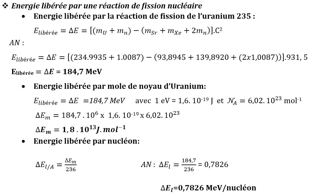III. Energie libérée par une réaction nucléaire :
