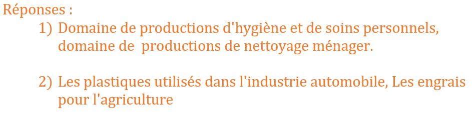 2) Donnez deux exemples de produits issus de la chimie lourde et leur application respective.