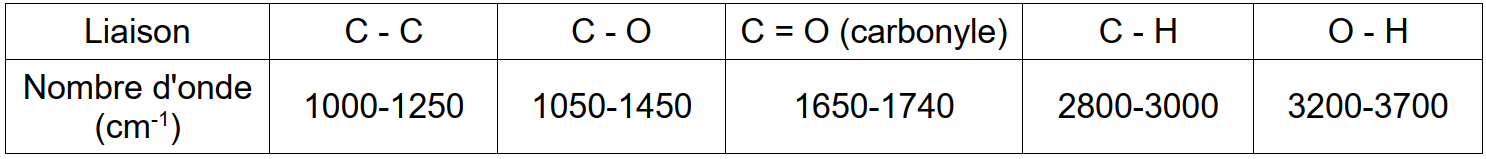 Document 2c : Table de données pour la spectroscopie IR