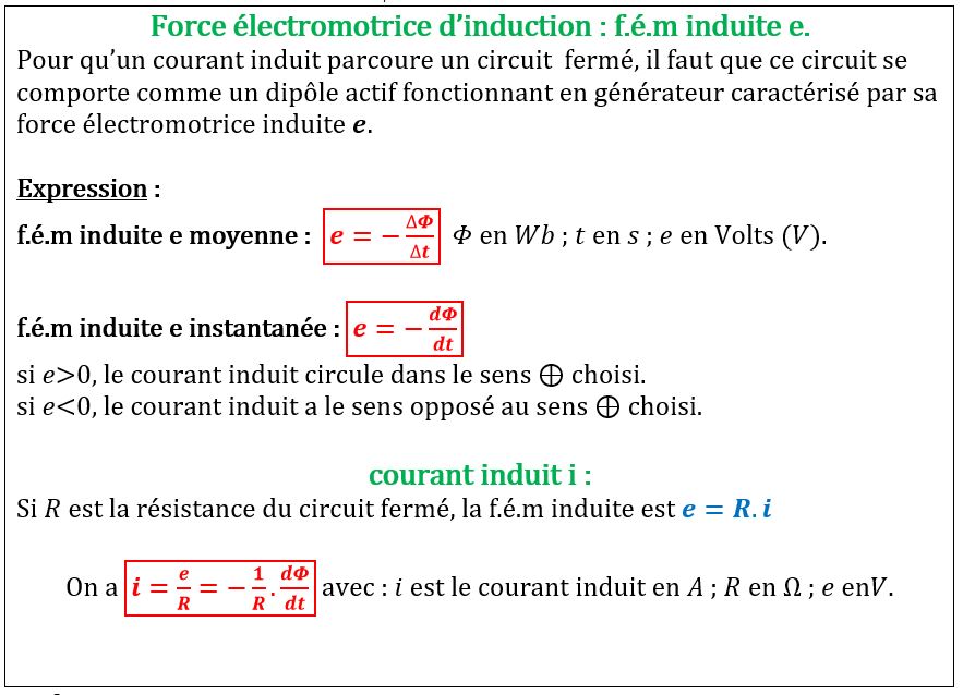 3. Force électromotrice d’induction (f.é.m. induite e) et courant induit i