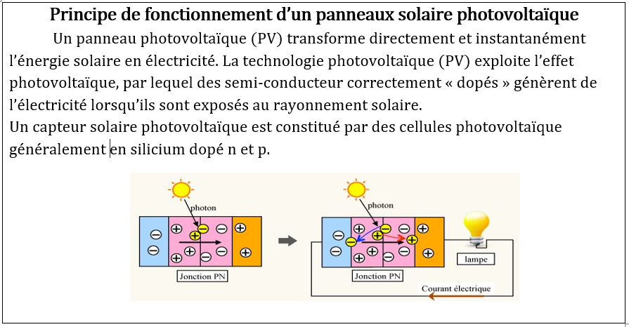 Activité 9 : Principe de fonctionnement d’un panneau solaire photovoltaïque