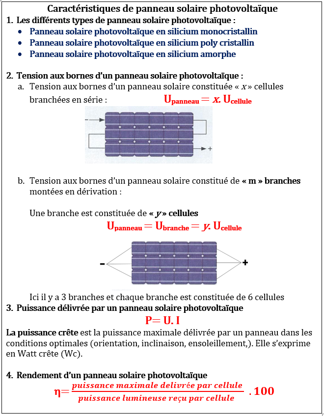 Activité 10 : Caractéristiques des panneau solaires photovoltaïques