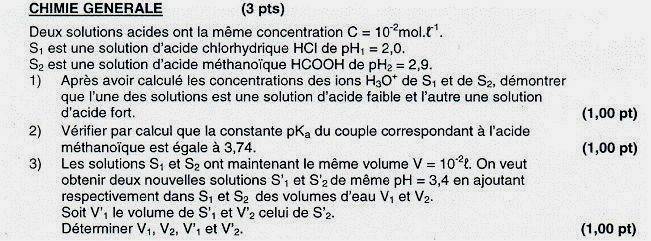 Exercice : dilutions d’un acide fort et d’un acide faible (Bac C 2009)
