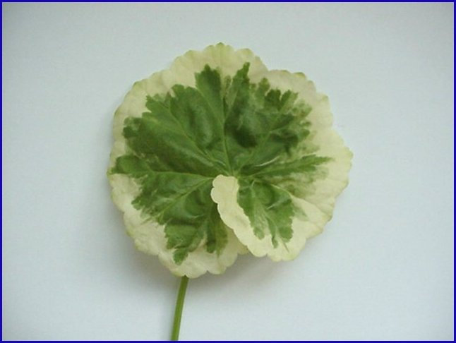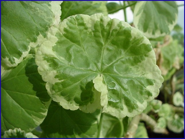 Préparation : un pot de Pélargonium à feuilles panachées est mis au soleil direct pendant 4 heures. La partie blanche des feuilles ne contient pas de chlorophylle.
