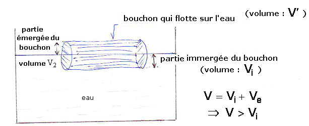 Un bouchon de liège est de masse volumique a=0,24g/cm 3 => sa densité d=0,24/1 = 0,24<1