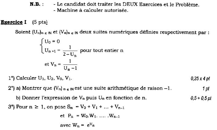 Enoncé Mathématiques série A 2006