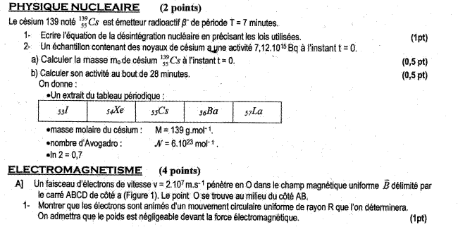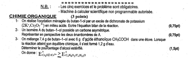 Les sujets de Sciences Physiques