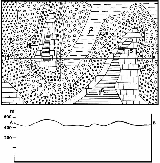 4 /En utilisant le profil topographique donné, réaliser la coupe géologique suivant AB.