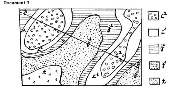 Soit l’extrait de carte géologique du Document 3, page 3.