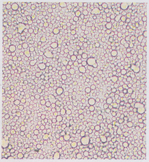 L’observation au microscope d’une goutte de lait additionnée d’une pointe de Soudan III et montée entre lame et lamelle montre des gouttelettes colorées en rouge se détachant sur un fond homogène incolore.