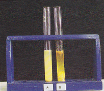 Dans le tube C contenant du petit-lait, on ajoute quelques gouttes d’AgNO3 : un précipité blanc se dépose pour montrer la présence de chlorure dans le lait.
