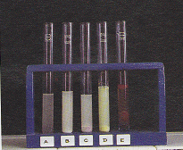 Dans le tube à essai E , on verse du petit-lait et un peu de liqueur de Fehling ; on porte à ébullition le tout : on obtient un précipité rouge brique qui marque la présence de sucre réductuer dans le lait .Il s’agit de lactose (glucide du lait)