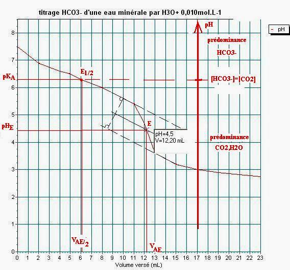 3°/ Calculer la concentration en ion hydrogénocarbonate de l’eau dosée.