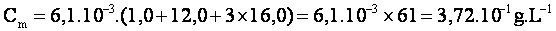 1°/ Calculer la concentration en acide éthanoïque d’un vinaigre à 6°. (La densité du vinaigre est d » 1).