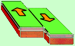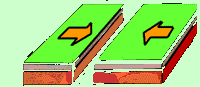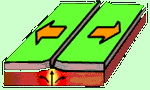 Sous l’effet des courants de convection, les roches magmatiques entrent en mouvement et entrainent les plaques se trouvant au-dessus (eurasiennes/africaines...) Certaines s’écartent (1), d’autres se rapprochent en coulissant l’une sous l’autre (subduction) ou entre en collision (2), enfin certaines coulissent l’une à côté de l’autre (3)