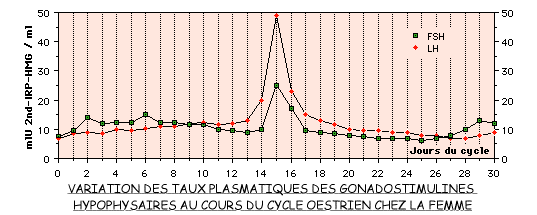 A la différence de ce qui a lieu chez l'homme, la fréquence et l'amplitude des pulses ne sont pas constantes au cours du cycle féminin.