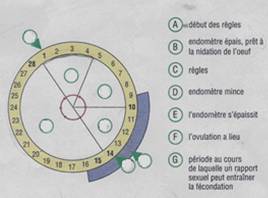 1- Que représente le schéma I ? 2- Sur ce schéma, écrivez en bonne place, les lettres A, B, C, E, F et G, correspondants aux différentes périodes indiquées. 3- A quoi repère-t-on le 1er jour du cycle ? 4- Expliquer l’expression : « utérus prêt à la nidation de l’œuf « ? 5- Dans le cycle de 28 jours, la ponte ovulaire a lieu au jour 14 .Comment peut-on alors expliquer que la période de la fécondité dure plusieurs jours ? 6- A laide du calendrier ci-dessous, indiquez les dates probables des règles ?