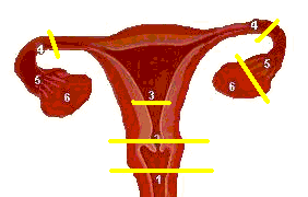 On peut agir au niveau des trompes (4) mais il s'agit alors plus d'une stérilisation definitive que d'une contraception.