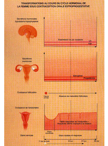 Il y a action sur le CHH en bloquant l’ovulation.