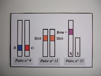 - la paire n° 11 avec les allèles de la drépanocytose : HbA = allèle dominant, HbS = allèle récessif,