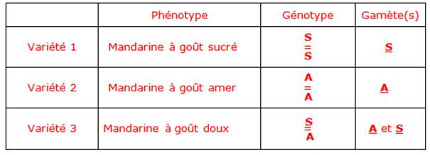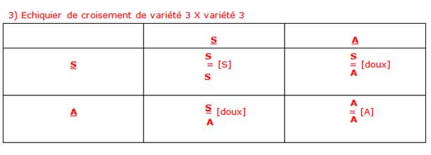 Proportion phénotypique : ¼ sucré ; ¼ amer ; 2/4 doux