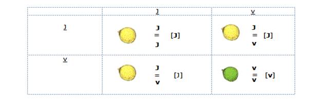 - L’allèle parental qui apparaît chez l'hybride de la 1ère génération F1 est dit dominant et désigné par une lettre majuscule, soit J