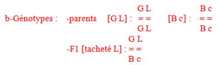 b- Donner les génotypes des parents et de la première génération F1.