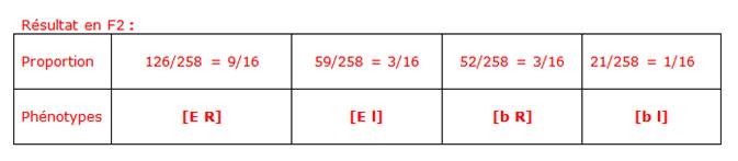Proportion phénotypique de F2 :
