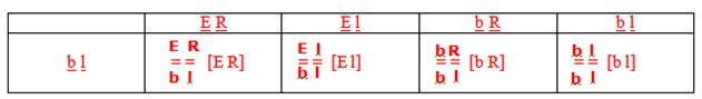 ¼ [E R], ¼ [E l], ¼ [b R] et ¼ [b l]