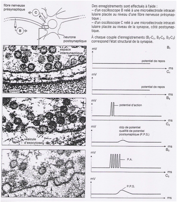 On cherche comment se transmet le message nerveux au niveau d’une synapse.