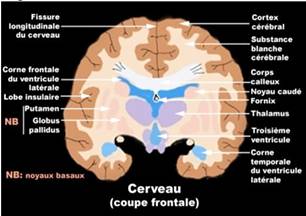 Le cerveau est l’organe de la pensée et de la perception, c’est lui qui contrôle toutes les grandes fonctions de l’organisme. Il est formé de deux hémisphères cérébraux dont la surface est creusée de nombreux scissures et sillons qui divisent la surface de chaque hémisphère en plusieurs lobes et chaque lobe, divisée en plusieurs circonvolutions