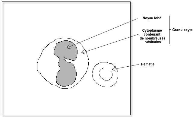 Les granulocytes sont caractérisés par des granulations intracytoplasmiques bien visibles et un noyau unique plurilobé. Leur taille varie de 12 à 18 microns; Ils représentent par leur nombre la première population leucocytairedu sang circulant et constituent entre 40 et 75 % des leucocytes.