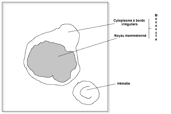 Les monocytes sont les leucocytes les plus volumineux (20 à 25 microns de diamètre. Ils représentent 2 à 10 % des leucocytes.