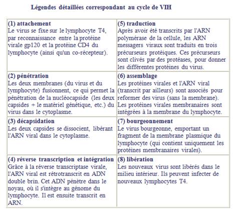 Il est à noter que le VIH peut en fait infecter de nombreux types cellulaires différents. Nous nous limiterons ici à l'exemple des lymphocytes T4.