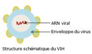 C’est un rétrovirus : virus à ARN capable d’intégrer son information génétique aux chromosomes des cellules infectées c’est-à-dire à leur molécule d’ADN. Il contient des enzymes transcriptase inverse, qui permet de recopier une molécule d’ARN en molécule d’ADN. Ainsi plusieurs copies d’ADN, contenant l’information génétique nécessaire à la production de centaine de VIH sont placées en attente dans les chromosomes de LTh infectés: