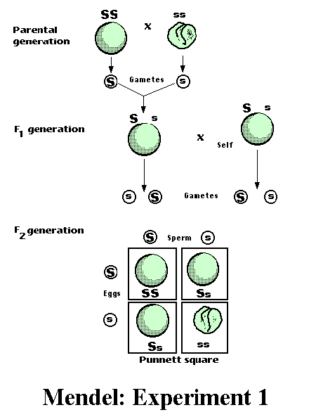This drawing illustrates Mendel's "Experiment 1",  in which he demonstrated his concept of heredity in the mating of pea plants.