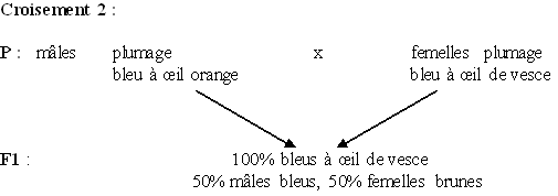 C’est la couleur des yeux qui est autosomale, car pour les croisements 1 et 2 tous les croisements sont à œil de vesce, donc c’est le gène de la couleur du plumage qui est lié au sexe.