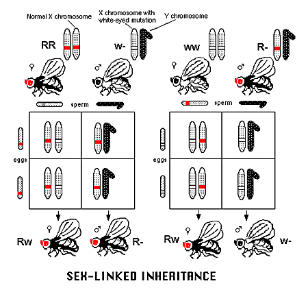 Legend: Drosophila are used to illustrate how alleles on sex chromosomes are inherited in predictable patterns.
