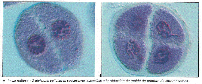 3 - La 1ère division de méiose aboutit à une séparation des chromosomes homologues, et la 2ème à une séparation des chromatides.