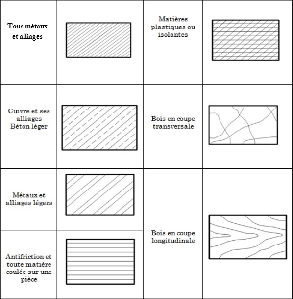 Faire les mêmes hachures pour les coupes d’une même pièce.