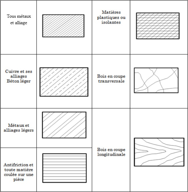 Faire les mêmes hachures pour les coupes d’une même pièce.