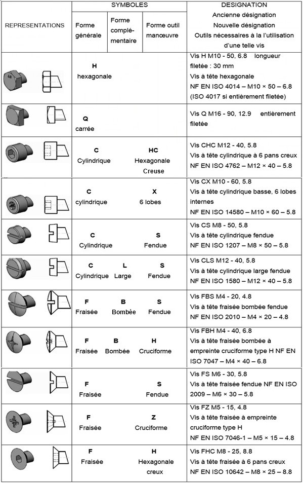 3.5- Type de tête d'une vis d'assemblage avec désignation