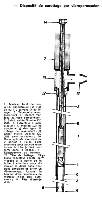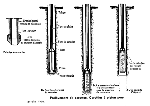 Le prélèvement des carottes est réalisé au moyen d’appareillages très divers, appropriés à la consistance des couches rencontrées :