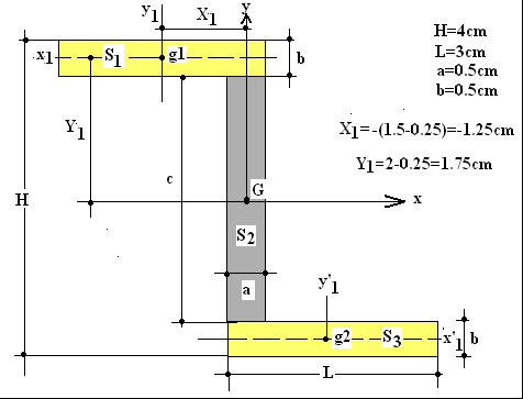 Iy(S1)=Iy1+S1.X12=(b.L3)/12+L.b.X12.=(0,5.33)/12+3.0,5.(1,25)2=3,47cm4.