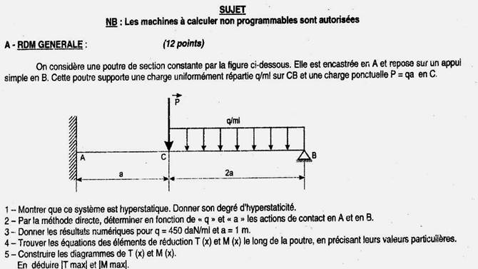 Remarque : L’application des expressions 2 et 2’ pour x=a, donne M(x)=-2qa2. Ce qui implique la continuité de la fonction M(x) au point C.