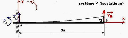 C-Etude du système 2 (poutre libérée de l’appui B remplacée par YB : force concentrée verticale, appliquée en B et orientée vers le haut):