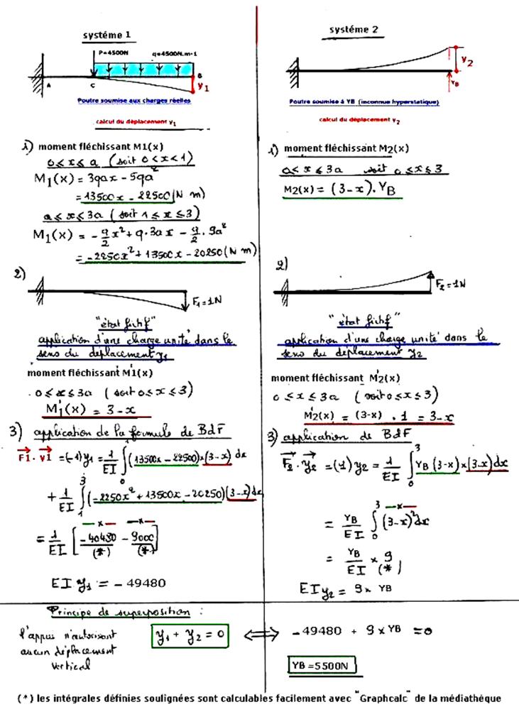 Chaque déplacement sera déterminé par la méthode énergétique de la charge unitaire (ou méthode de BdF). Une calculette graphique est nécessaire pour mener les calculs