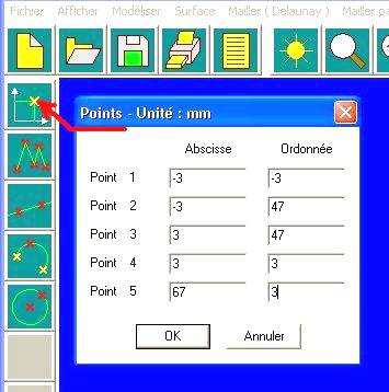 Sélectionner l’icône « Points » et entrer les coordonnées.