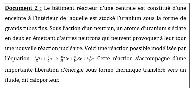 2. Quelle est la réaction nucléaire utilisée dans une centrale nucléaire ?