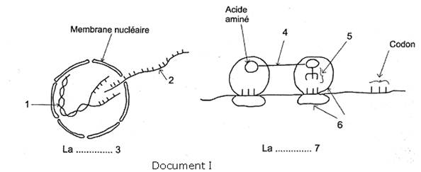 1- le document I suivant résume la synthèse d’une protéine. Annoter et titrer ce document sans le reproduire.